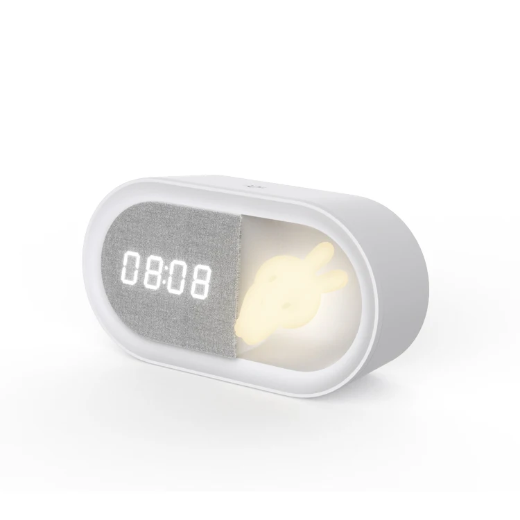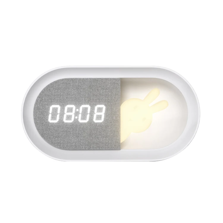 Multi-function Rechargeable Touch Dimming Modern Desk Clock With Night Light Rabbit Clock Night Light for Kids